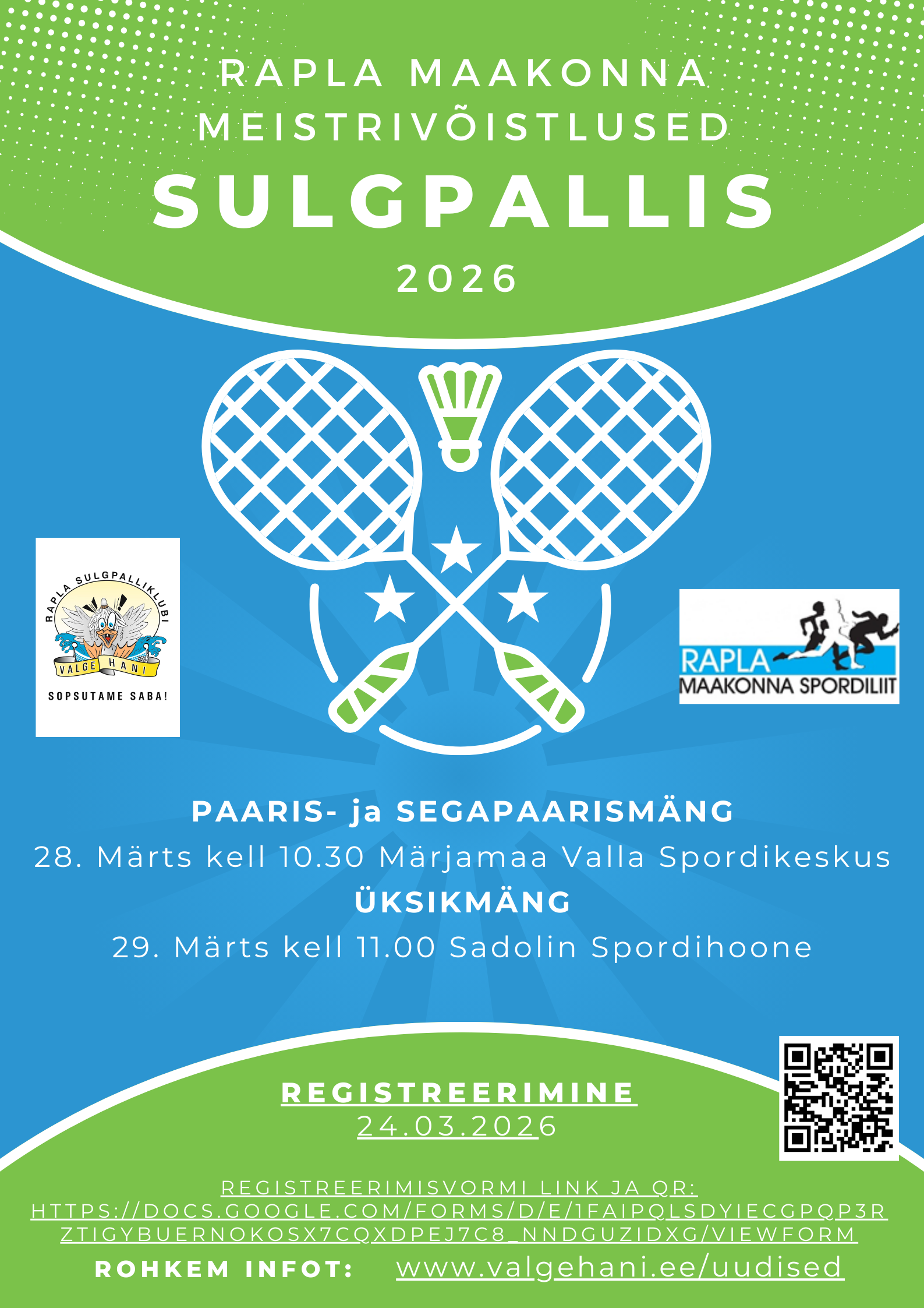 PAARIS- SEGAPAARISMÄNGUD: 22.03.2025 kell 10:30 Märjamaa Valla Spordikeskuses.